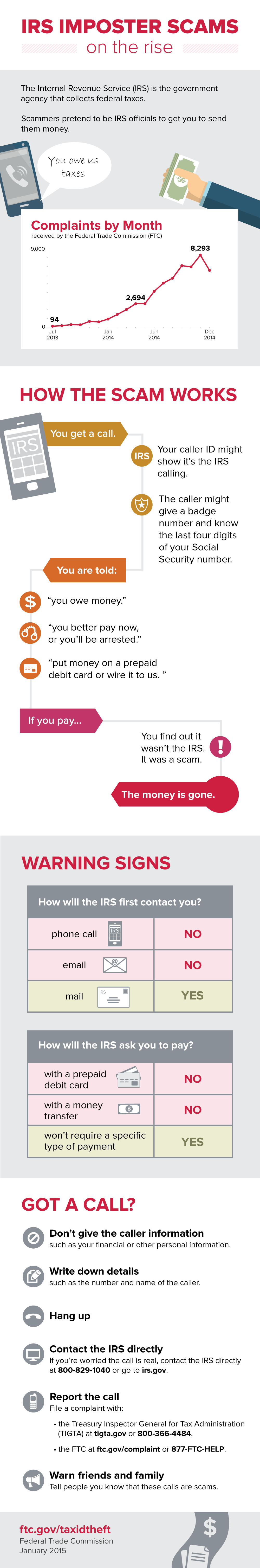 3. “IRS Imposter Scams Infographic,” Federal Trade Commission, January 2015, https://www.consumer.ftc.gov/articles/0519-irs-imposter-scams-infographic.